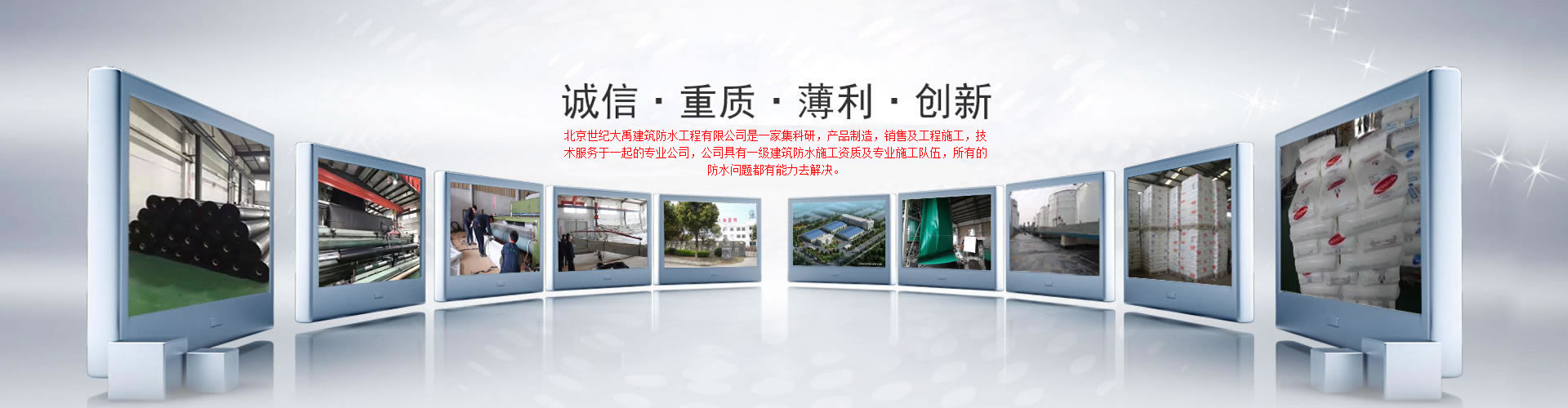 北京世紀(jì)大禹建筑防水工程有限公司是一家集科研,產(chǎn)品制造,銷(xiāo)售及工程施工,技術(shù)服務(wù)于一起的專(zhuān)業(yè)公司,產(chǎn)品主要包括道路橋梁專(zhuān)用材料、建筑堵漏材料、建筑防水卷材、建筑防水涂料等。產(chǎn)品行銷(xiāo)全國(guó),形成了覆蓋全國(guó)的營(yíng)銷(xiāo)服務(wù)網(wǎng)絡(luò)。產(chǎn)品廣泛應(yīng)用于建筑物屋面、地下、地鐵、隧道、橋梁、泳池、糧庫(kù)、種植屋面等防水、防潮、防腐、防滲等工程。公司具有一級(jí)建筑防水施工資質(zhì)及專(zhuān)業(yè)施工隊(duì)伍,所有的防水問(wèn)題都有能力去解決,作為系統(tǒng)防水解決方案的提供者,我們已經(jīng)將各項(xiàng)防水系統(tǒng)成功應(yīng)用于國(guó)家大型基礎(chǔ)設(shè)施建設(shè)項(xiàng)目中,防水系統(tǒng)優(yōu)良的應(yīng)用效果也獲得了用戶(hù)及社會(huì)各界的高度評(píng)價(jià)。 用戶(hù)滿(mǎn)意是企業(yè)永恒的追求,在充滿(mǎn)機(jī)遇挑戰(zhàn)的時(shí)期,將以市場(chǎng)為導(dǎo)向,以人才為根本,以技術(shù)為支撐,以資本為紐帶,打造一個(gè)實(shí)力雄厚、核心競(jìng)爭(zhēng)力強(qiáng)大的國(guó)際化企業(yè)。我們將用信念、追求和執(zhí)著開(kāi)啟新的航程,乘風(fēng)破浪,勇往直前,駛向我們的理想和目標(biāo),為人類(lèi)及社會(huì)創(chuàng)造持久安全的環(huán)境及構(gòu)筑和諧的人居環(huán)境貢獻(xiàn)我們的力量! |
